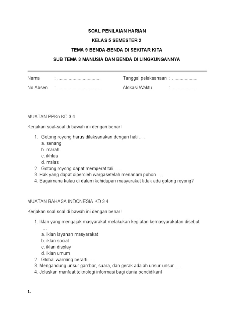 Soal Bahasa Indonesia Kelas 5 Tema 9 from imgv2-1-f.scribdassets.com Check spelling or type a new query. Soal bahasa indonesia tentang iklan kelas 5. We did not find results for: Maybe you would like to learn more about one of these?